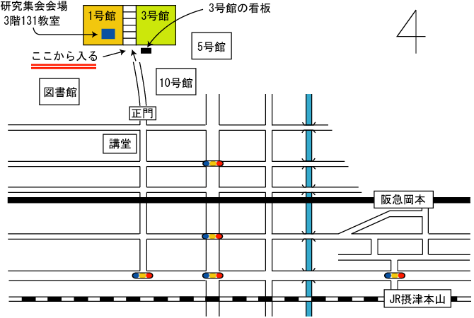 甲南大学への最寄りの駅は、阪急岡本駅、または、JR摂津本山駅です。 そこからの道は下図の通りで、徒歩10分〜15分です。 1号館と3号館の間のホールに入り、そこから1号館の3階に上がります。 しかし、3号館の看板がすぐ見えてきますので、 3号館に入るような気持ちになるかもしれません。 なお、甲南大学は全館禁煙ですので、ご協力よろしくお願いいたします。